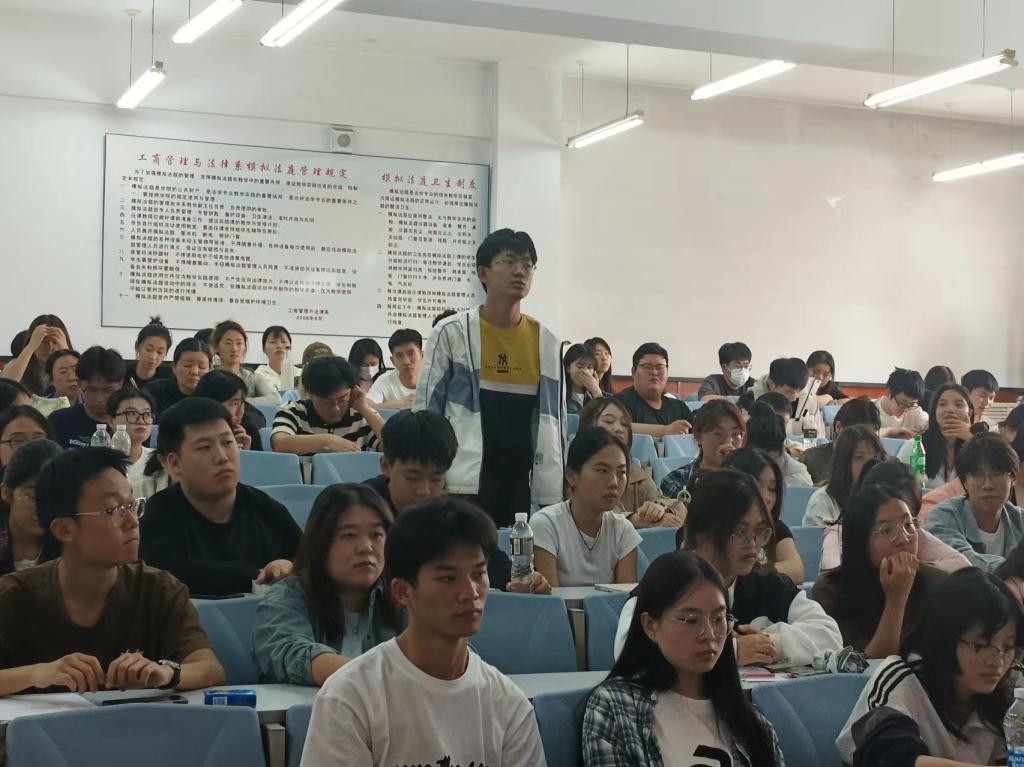 在互动环节,公司3名本科生同学先后向王福友副董事长提了“新《公司法》引入授权资本制对我国公司现状有哪些影响”“如何学习商法”“新《公司法》关于有限责任公司股东在公司成立后五年内缴足出资是否会对其他股东产生影响”等非常有价值的问题。王董事长结合个人的法治实践和学术研究成果,详细地解答了同学们的问题。