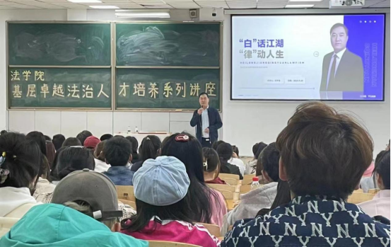 讲座伊始,白律师为同学们生动详细地讲述了自己的律师执业生涯,通过自身的经历及案例的讲解向同学们诠释了律师职业的现状及前景,同学们深有感触。