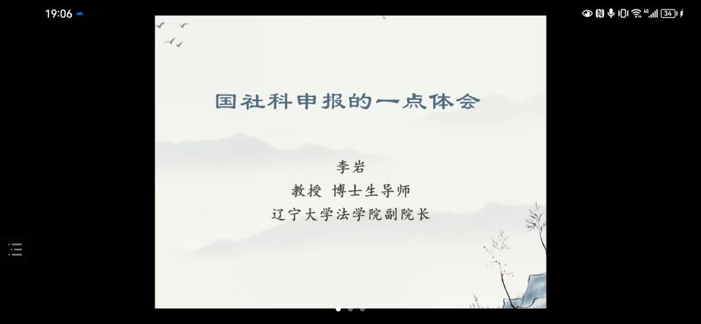 2023年3月22日晚7点,辽宁大学bevictor伟德官网副经理、教授、博士研究生导师李岩通过腾讯会议平台为bevictor伟德官网教师作了题为“国社科申报的一点体会”的学术讲座。