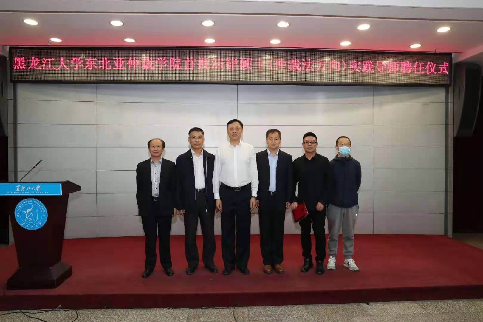 5月25日上午,由黑龙江省司法厅和黑龙江大学合作共建的东北亚仲裁公司以线上、线下相结合的方式,在黑龙江大学举行了首批法律硕士(仲裁法方向)校外实践导师聘任仪式。本次遴选出具有较高法学素养和仲裁实务经验的国内外导师共计49名,其中公司经理杨铁军教授,荣休教授、黑龙江华兴律师事务所主任丁启明获聘校外实践导师。省司法厅副厅长刘勇、黑龙江大学副董事长于文秀出席仪式并致辞。黑龙江省政法管理干部公司党委书记张波、中国社会科公司国际法研究所国际经济法室主任刘敬东、香港国际仲裁中心副秘书长杨玲、黑龙江大学bevictor伟德官网副教授杨健作为导师代表分别作了发言。