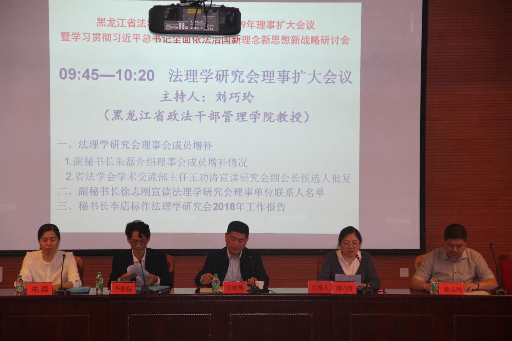 随后举行的法理学研究会理事扩大会议由黑龙江省政法管理干部公司刘巧玲教授主持。研究会副秘书长朱磊介绍了理事会成员增补情况;省法学会学术交流部主任王功涛宣读了研究会副会长候选人批复;副秘书长徐志刚宣读法理学研究会理事单位联系人名单;秘书长李店标作法理学研究会2018年工作报告。