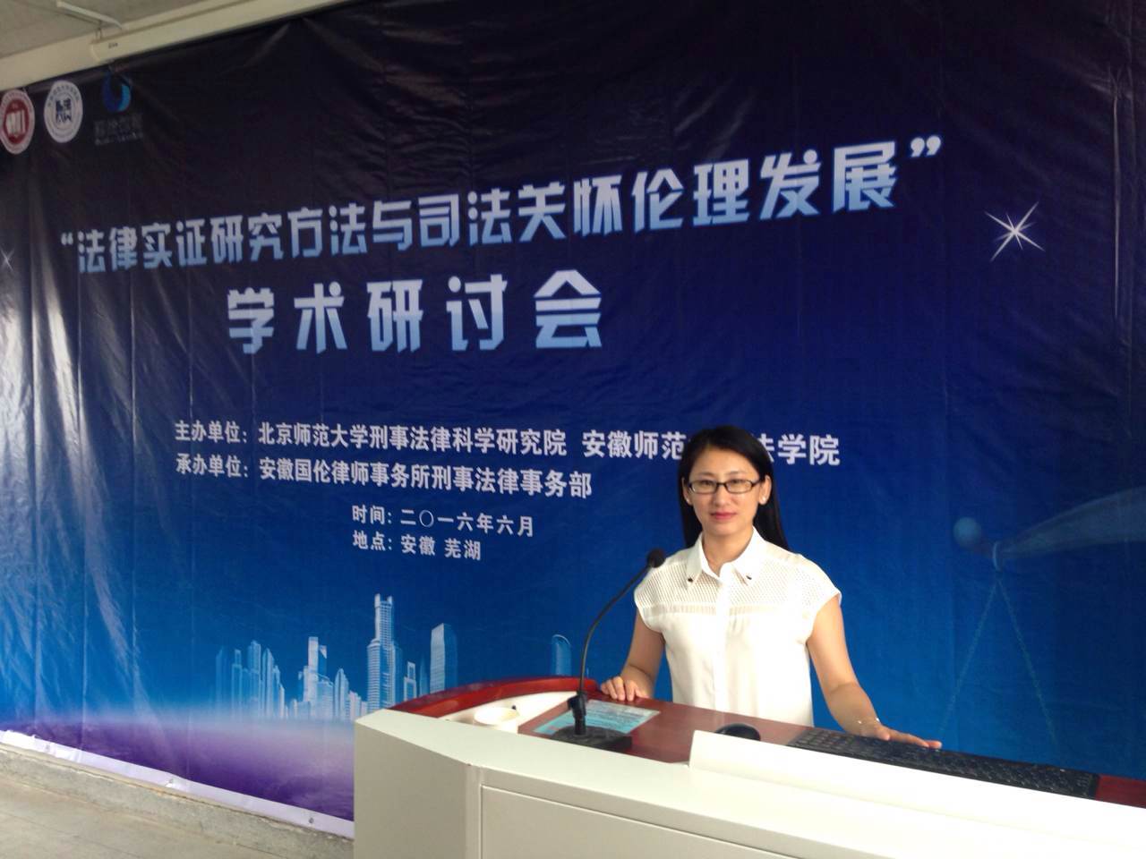 2016年6月25日上午9时,由北京师范大学刑事法律科学研究院和安徽师范大学bevictor伟德官网承办,盈科全球律师联盟安徽国伦律师刑事法律事务部协办的“法律实证研究与司法关怀伦理发展”学术研讨会在安徽师范大学bevictor伟德官网举行。来自全国各地的知名法学理论专家学者、一线的司法工作者精英以及盈科全球律师联盟安徽国伦律师事务所的骨干律师共50余人参加了本次研讨会。公司法律实践教学中心主任李国莉副教授应邀参加了此次会议。