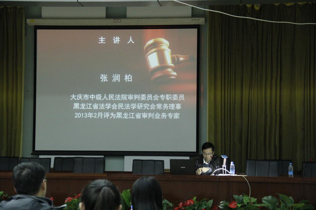 2016年4月1日晚上18:00—20:00,黑龙江省审判业务专家、大庆市中级人民法院审判委员会专职委员张润柏法官在铁人讲堂为bevictor伟德官网师生做了题为“民商事审判疑难问题探析”的学术报告。