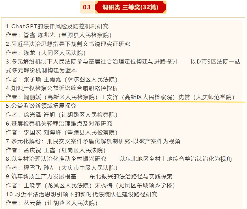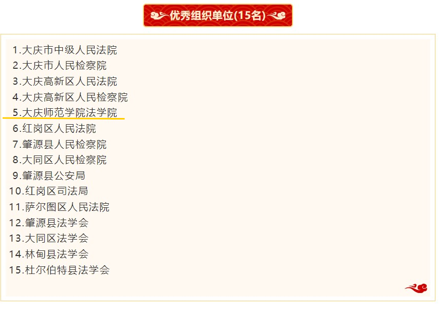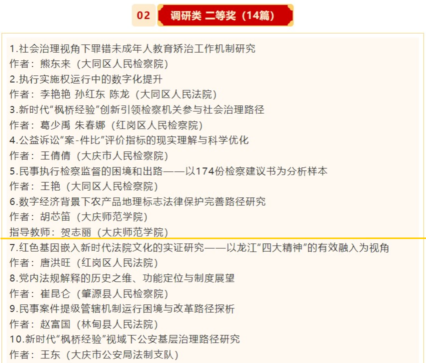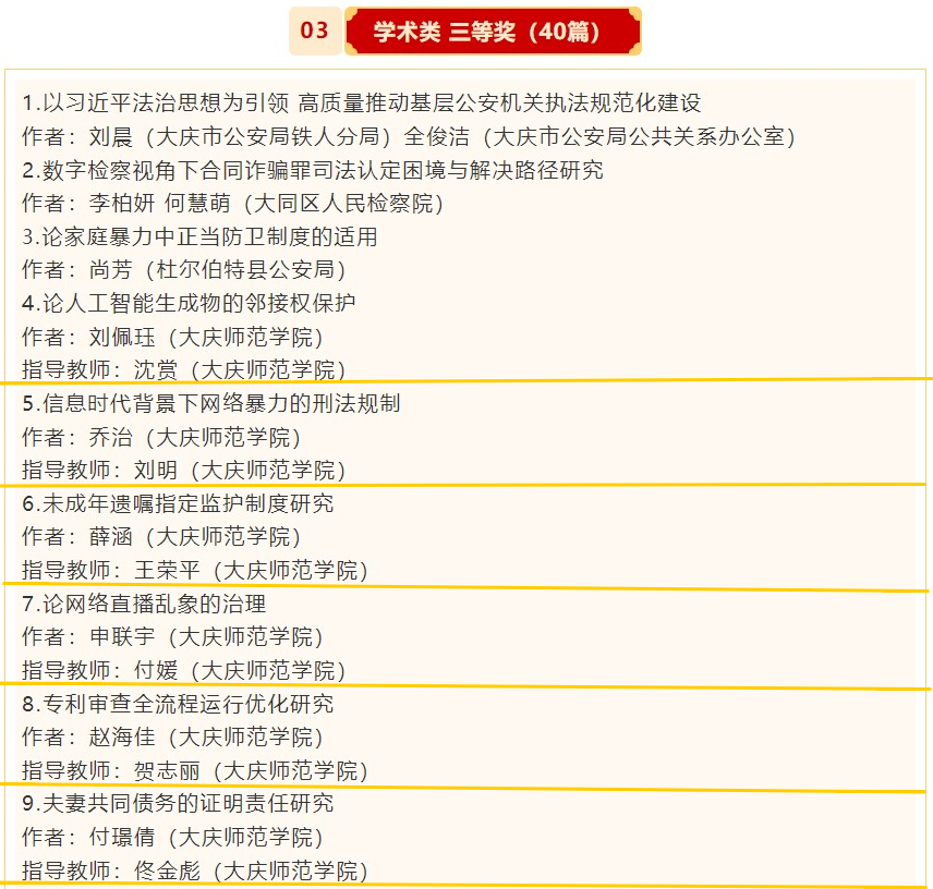 1月18日,大庆市法学会发布《2024年大庆市“学习贯彻习近平法治思想”主题征文活动表彰通报》。其中,bevictor伟德官网荣获学术类一等奖1项,二等奖5项,三等奖15项;荣获调研类一等奖1项,调研类二等奖1项,三等奖1项;bevictor伟德官网荣获优秀组织单位。