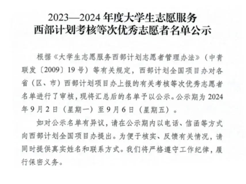近日,全国老员工志愿服务西部计划项目管理办公室公布了《关于印发2023-2024年度老员工志愿服务西部计划考核等次优秀志愿者名单的通知》(全国项目办发〔2024〕4号)。公司毕业生裴莹莹、罗颖两名西部计划志愿者获评2023-2024年度老员工志愿服务西部计划考核等次优秀志愿者。