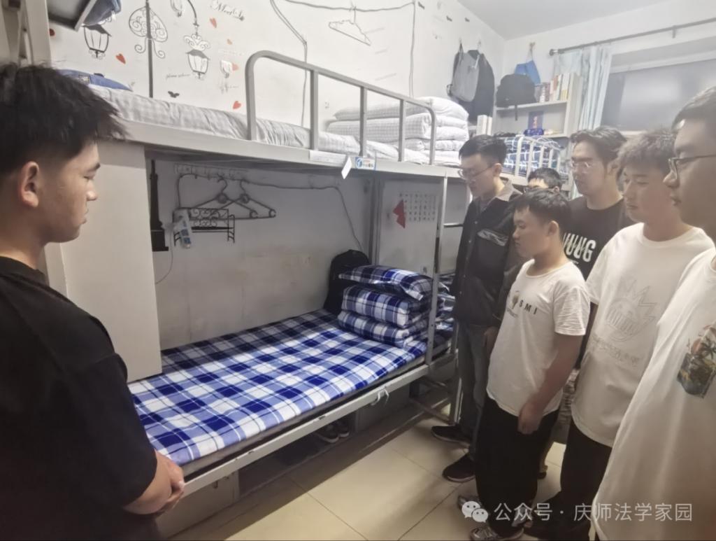 为培养新生良好的生活习惯,保证军训的完整与严格,使铁人精神内化于心,外显于形。9月7日晚,教官团队走进员工公寓,以第三公寓301舍为例,号召各寝室长前来学习,做好内务整理开学第一课。