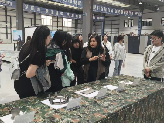 同学们来到展厅,认真聆听了黑龙江多维时空自由制造有限公司知识产权部部长李莉莉的讲解、参观了航天器械配件及医疗器械部件等产品展示、观看了公司的科技创新成果专题片,看到车间的生产环节均为自动化、智能化设备,同学们们感受到了高科技的震撼。