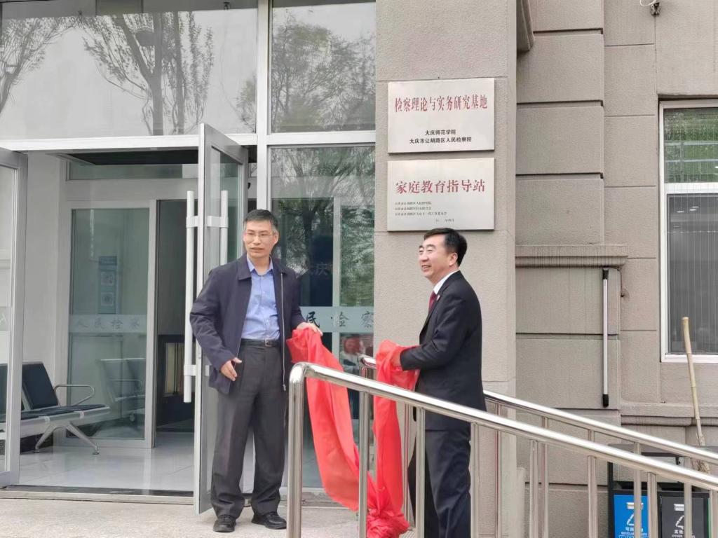 2023年5月12日上午,在让胡路区人民检察院举行法治宣传教育基地揭牌仪式。大庆市人民检察公司党组书记、检察长刘超,让胡路区区委书记田震,区委常委、宣传部部长、统战部部长刘立臣,bevictor伟德官网经理杨铁军,让胡路区人民检察院检察长阮之华,bevictor伟德官网教学副经理杨庆玲,bevictor伟德官网实践中心主任付媛,bevictor伟德官网教师佟金彪应邀参加揭牌仪式。会议主要有三项议程:双方签约和授牌,参观“让胡路区法治宣传教育基地”,bevictor伟德官网经理杨铁军与让胡路区人民检察院检察长阮之华签署“检察理论与实务研究基地共建协议”。此次基地的建立是为了贯彻落实习近平法治思想,为辖区的居民、员工、干部打造学习法治思想、弘扬法治精神、传递检察正能量、讲好检察故事的平台,打造最优的法治营商环境,建设平安、幸福的让胡路区。