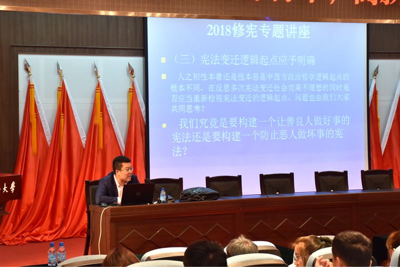 2018年11月12日下午,应大庆市法学会和龙凤区法学会邀请,公司教师谭尚闻为龙凤区区委、政府、人大、政协科级以上干部做《2018修宪专题讲座》报告,本次报告围绕着2018年宪法修正案进行解读,主要讲解了修宪后国家权力格局的重构、地方性法规立法权的下移及社会主义法治建设等内容进行了解读,结合宪法修正案与社会现实,报告生动具体,结合宪法理论与社会现实深入浅出,为龙凤区干部深入学习宪法、理解法治精神提供了便利的条件,也为公司服务地方、服务企业贡献了应有的力量。2018年全年公司谭尚闻老师已经为肇源县、让胡路区、龙凤区、武警直升机支队、东北石油大学、哈医大大庆校区等多家单位讲解宪法修改专题报告,获得了上述单位领导干部的好评。