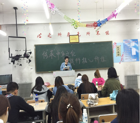 在活动中座谈会人员围绕“传承中华文化,践行核心价值”主题,结合自身看法,全面介绍了中华的传统文化,其中以孝、敬、信为主。通过主持人与同学们的互动,使同学们了解中华文化的博大精深。同学们不时幽默风趣的语言引起大家的欢笑声和掌声,活动氛围融洽。活动的最后,由主持人总结并宣读倡议书,希望同学们能够坚定的弘扬中华传统文化,以实际行动践行社会主义核心价值观,提倡自由平等的社会风气,极大的激发了同学们的爱国心。