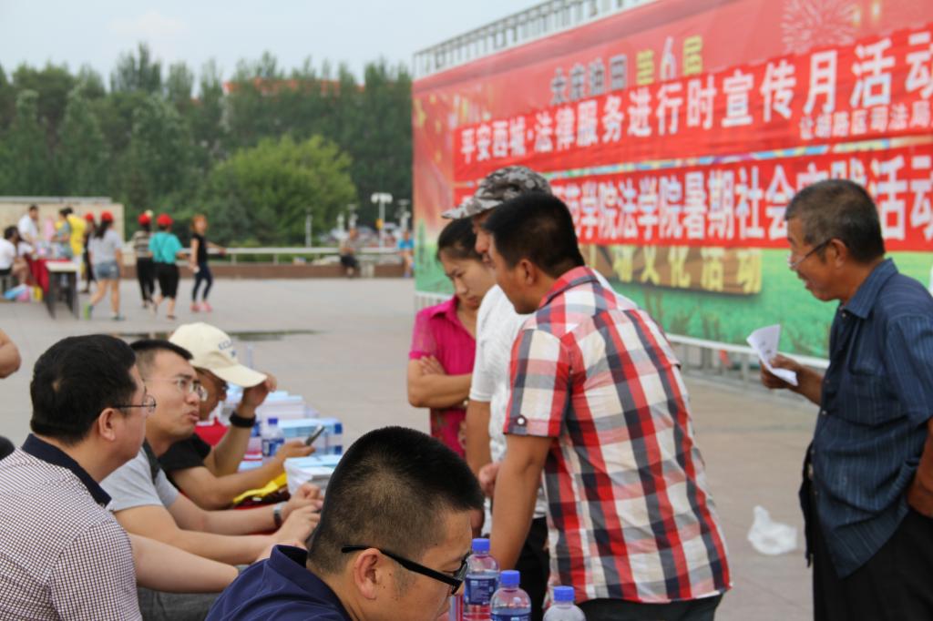 二是组织让胡路区10所律师事务所的律师与公司专任教师开着法律咨询服务工作。向百姓解答了有关财产安全法规、婚姻法、继承法、刑法、民法等相关法律问题。得到了百姓的认可。