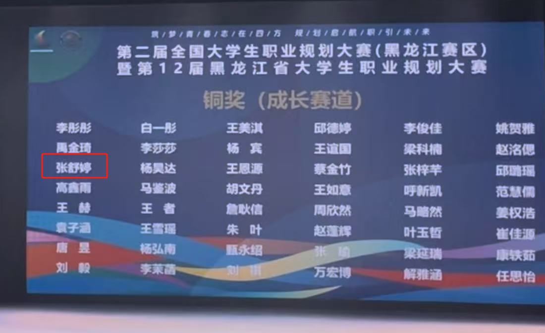 第十二届黑龙江省老员工职业规划大赛以“筑梦青春志在四方,规划启航职引未来”为主题,分设成长、就业两大赛道。经过院级初赛、校级决赛和省级初赛的激烈角逐,最终公司张舒婷同学晋级成长赛道省级决赛。
