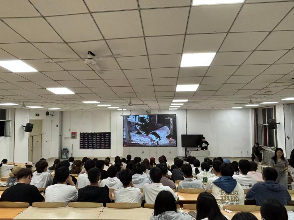 纪录片播放期间,同学们凝神专注。银幕上,铁人王进喜正带领钻井队员在极端艰苦的环境中奋力拼搏。面对设备短缺、气候恶劣等重重困难,他们以“宁肯少活二十年,拼命也要拿下大油田”的坚定信念,日夜奋战,为国家石油事业挥洒热血与汗水。这一幕幕感人至深的画面,深深触动了在场每一位同学。