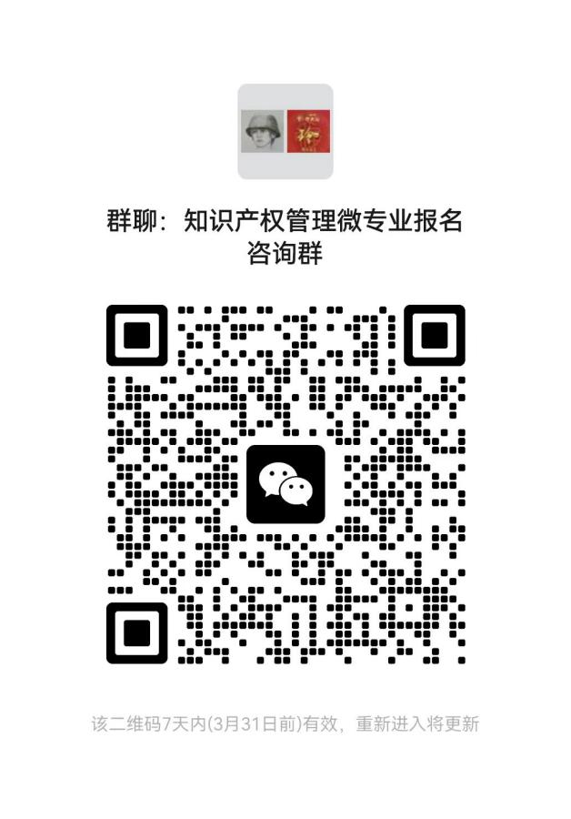 请于2025年4月15日24时前扫码加入知识产权管理微专业报名咨询微信群或QQ群,也可直接扫描二维码报名: