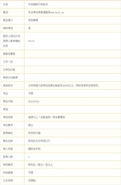 2010年国家公务员考试竞争比例最高的职位是科学技术部国际合作司的欧洲处主任科员以下职位,竞争比例为4224:1