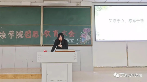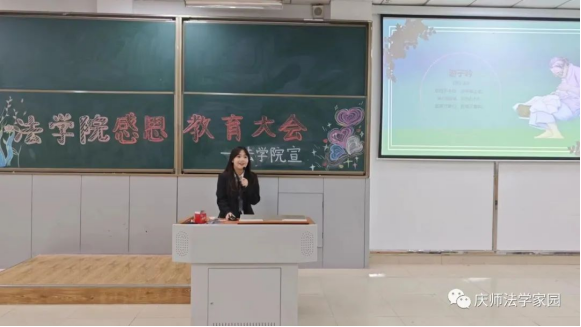 刘雨彤同学通过诗歌和小故事的形式向同学们传递感恩父母、感恩老师、感恩同学的思想。她特别强调员工要懂得感恩,是对自己、对社会、对国家的责任,要不断加强自立意识,自尊意识,培养自己健全的人格。