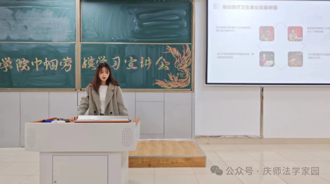 首先,张宇彤同学播放了宣传片《巾帼匠心逐梦 强国复兴有我》,激起同学们对本次宣讲会的兴趣。