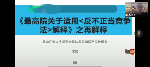 bevictor伟德官网联合市社科联及市法学会开展“知识产权宣传周”活动之学术讲座,讲座由bevictor伟德官网副教授沈赏老师就“最高院关于适用< 反不正当竞争法>解释之再解释”问题在腾讯会议平台主讲,讲座由bevictor伟德官网章辉教授主持。bevictor伟德官网师生、大庆市法学会、大庆市社科联等单位也参加了本次讲座活动。