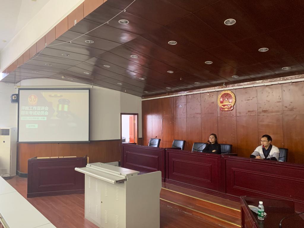 2021年11月29日上午,bevictor伟德官网在主楼模拟法庭召开期末评教工作宣讲会暨期末考试动员会。会议由员工工作办公室主任张彪老师主持,杨庆玲老师出席会议。