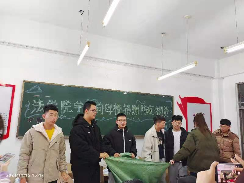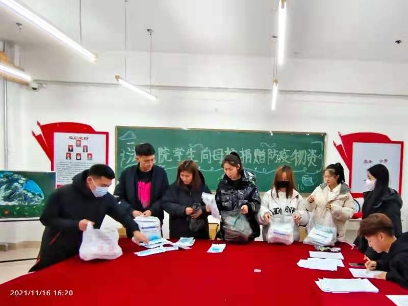 2021年11月16日下午,2021级法学专升本班王思远同学向公司捐赠了14000只口罩和1000副医用手套,用于疫情防控。bevictor伟德官网员工工作办公室主任张彪老师参加了捐赠仪式并代表公司接收了捐赠物品。