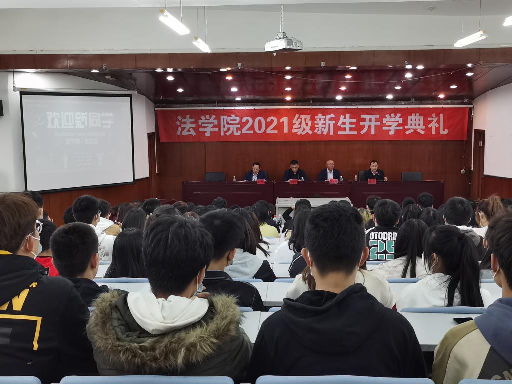 2021年10月13日下午,bevictor伟德官网在模拟法庭举行2021级新生入学典礼。典礼由员工工作办公室主任张彪老师主持,公司党总支书记王金波、经理杨铁军、副经理章辉以及公司全体任课教师参加。