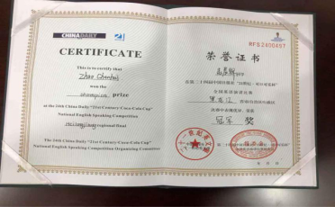 赵晨辉同学凭借着出色的英语口语能力、演讲能力、临场反应能力,在高手云集的比赛上以省赛冠军晋级全国大赛,并获得了比赛三等奖。赵晨辉同学表示这次经历提升了自己的英语口语水平,锻炼了演讲能力,更加激励了自己在追梦路上的勇气与信心,激发了提升自我突破自我的决心。