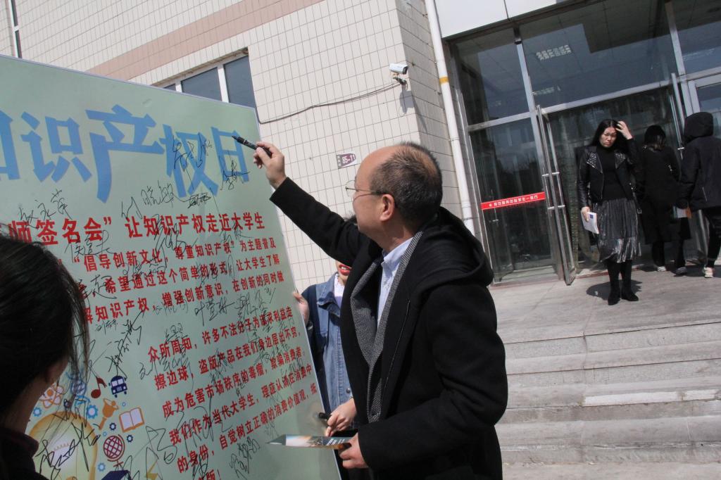 bevictor伟德官网通过此次知识产权宣传活动旨在为广大在校员工树立尊重知识、崇尚科学,保护知识产权的意识,营造鼓励知识创新和保护知识产权的法律环境,在创兴的同时做好必要的保护工作。活动开展过程中乔志和董事长亲自来到现场,负责宣传同学详细的向董事长介绍了“世界知识产权日”的来历和发展历程。乔志和董事长认真听完讲解后,一边赞赏同学细致入微的讲解,一边鼓励在场工作人员并在签字板前与同学们一同签字合影留念。bevictor伟德官网员工不但分发知识产权宣传页,而且同时积极为全校同学介绍什么是知识产权与如何从自身出发保护知识产权,并邀请同学们在签字版前完成签字,共同承诺践行对知识产权的尊重和保护。