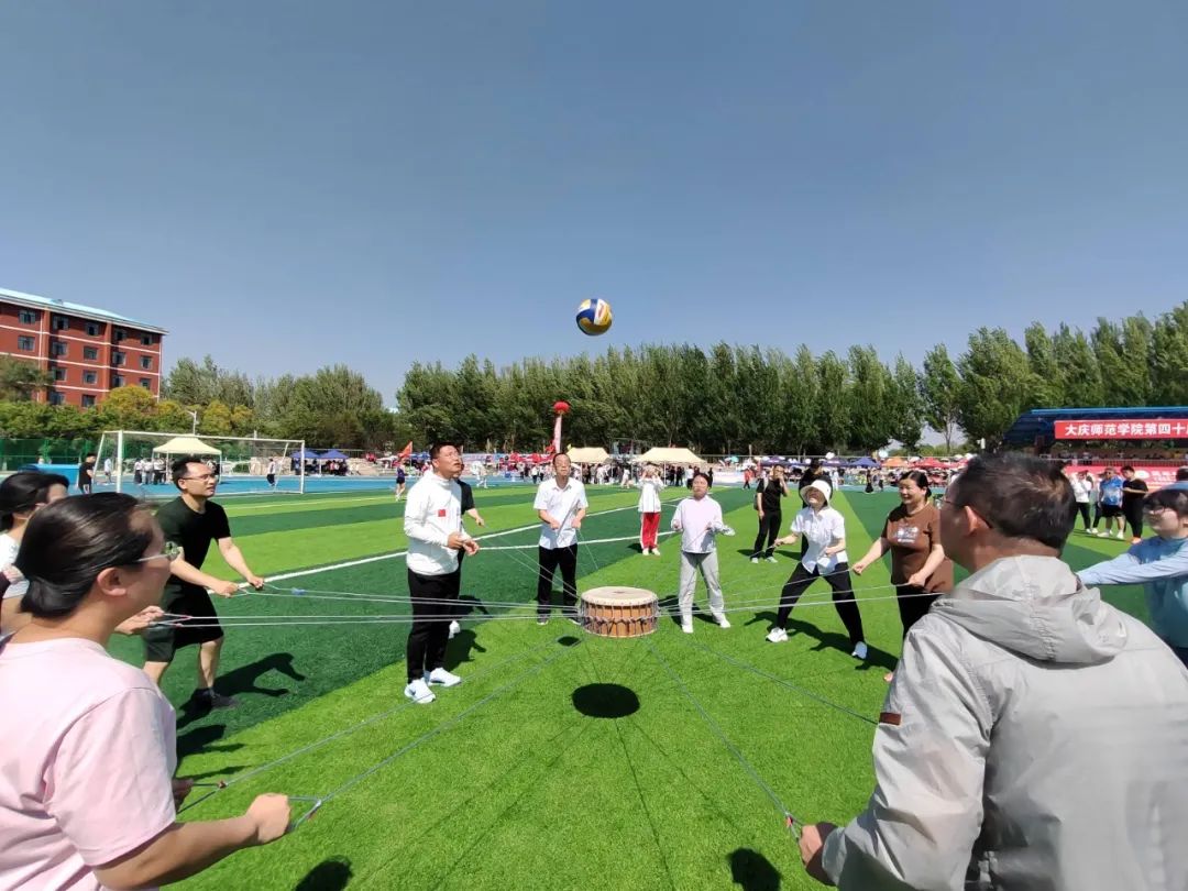 笑语融师意,拼搏展风姿。教职工项目同样丰富多彩,将竞技性与趣味性巧妙融合。老师们积极参与,默契配合,以饱满热情投入每个环节,汗水与笑容交织,为校园盛会添上亮眼一笔。