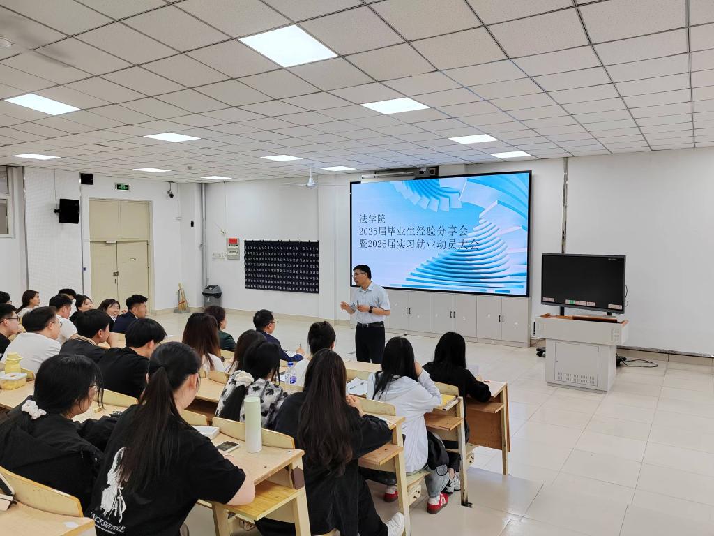 会议最后,杨铁军经理总结指出,实习是实现法学理论与法律实践深度融合的桥梁。通过实习,不仅能巩固专业知识体系,更能有效提升法律文书写作、案件处理等实务能力。同学们需锚定实习目标,以端正的态度和主动作为的精神投身实践,在实习中锤炼本领、积累经验。