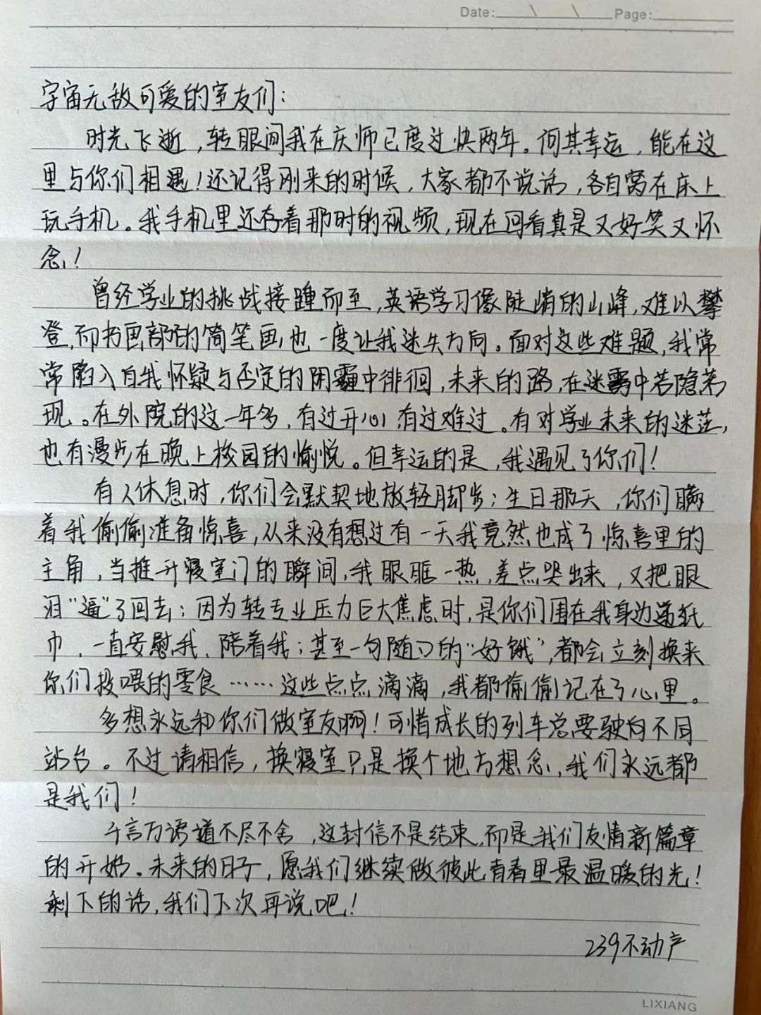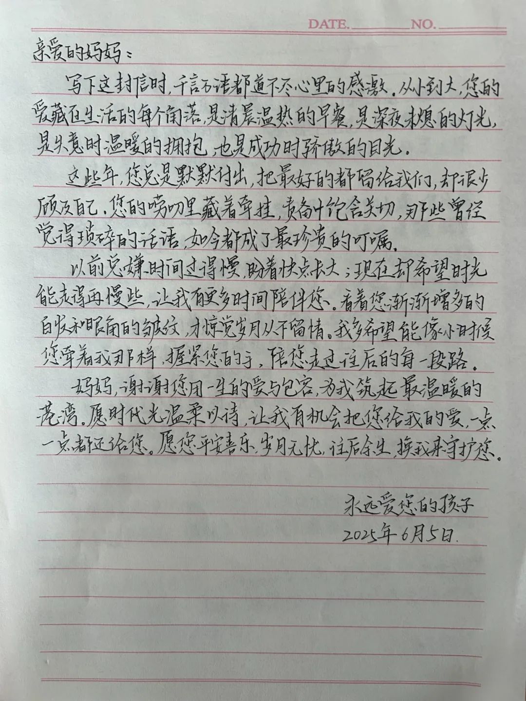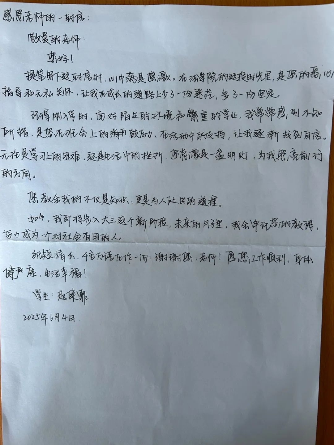在六月的温柔序曲中,bevictor伟德官网精心策划了“感恩信笺”主题活动。倡导同学们“守诚信之本,怀感恩之心”,以笔为舟,以情为帆,将自己的深切感悟与难忘回忆,细细镌刻于一纸信笺之上。那些或温暖、或感慨、或不舍的文字,如璀璨星辰,镶嵌进校园生活的长河,镌刻下永恒而珍贵的记忆。