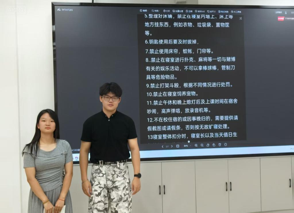 活动伊始,生活部部长代浩洋、于颜丞共同为新生详细解读了公司员工宿舍管理相关规定,包括作息时间、用电安全、卫生检查标准、公共设施使用规范等,并结合实际案例讲解常见注意事项,强调遵守纪律、共建文明宿舍的重要性。