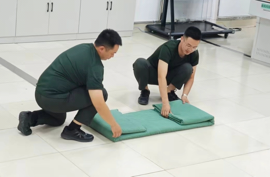 随后,军训教官在现场进行内务整理示范,从被褥叠放、物品摆放到整体清洁,一步步展示标准化要求,并指导同学们动手实践,掌握内务整理的基本技能。教官们动作规范、讲解细致,同学们认真观摩、积极尝试,现场气氛热烈有序。