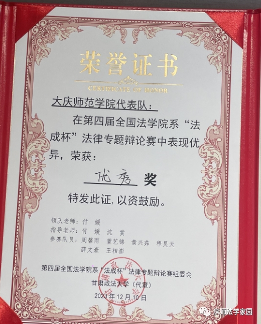 公司由付媛、沈赏担任指导老师,2021级员工黄兴茹、董艺锦、周馨雨、王相澎、薛文豪、程昊天组成的“庆师尚法队”参加比赛。