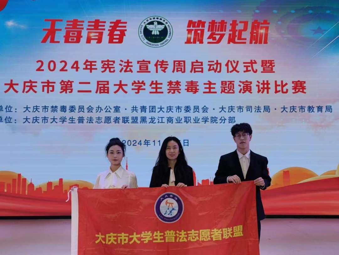 本次比赛由大庆市禁毒委员会、共青团大庆市委员会、大庆市司法局、大庆市教育局、大庆市老员工普法志愿者联盟主办,黑龙江商业职业公司承办。